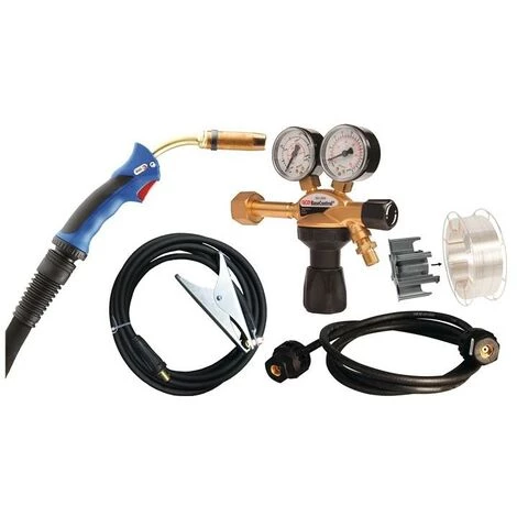 Set bestehend aus: MIG/MAG Schweißbrenner MB GRIP 401 D 4 m, Massekabel 400A 5 m D.50 mm² KS 50, Gasschlauch 2 m, Flaschendruckminderer Argon / CO? 200 bar mit Ventil, Korbspulenadapter B-300 Weitere technische Eigenschaften: · Inhalt: 5-teilig