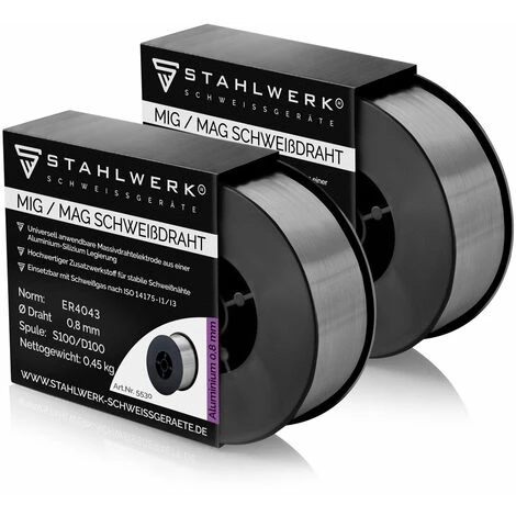 - 2 × STAHLWERK MIG MAG Aluminium Schweißdraht ER4043 Si5 (ALSI-5) Ø 0,8 mm 0,45 kg Drahtrolle