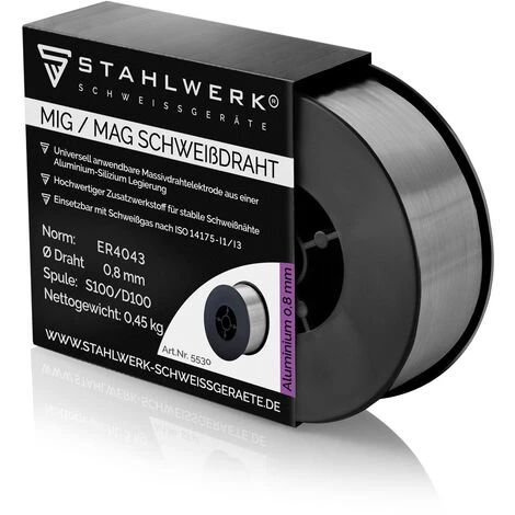 - 1 × STAHLWERK MIG MAG Aluminium Schweißdraht ER4043 Si5 (ALSI-5) Ø 0,8 mm 0,45kg Rolle