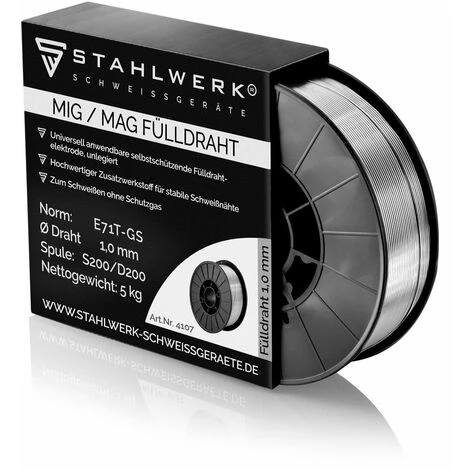 - 1 × STAHLWERK MIG MAG Premium Fülldraht E71T-GS Ø 1,0 mm / 5 kg S200/D200 Rolle