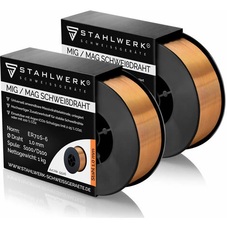 Lieferumfang: STAHLWERK MIG MAG Schweißdraht ER70S-6 SG3 Ø 1,0 mm / 1 kg S100/D100 Rolle